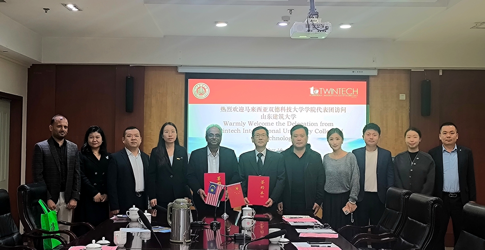 10月16日,马来西亚双德科技大学(Twintech International University College of Technology,简称TWINTECH)副校长赛尔瓦拉吉·奥彦·皮莱(Selvaraj Oyyan Pillay)教授、国际处处长阿巴斯·卡马尔(Abus Qamar)副教授及其中国事务代表团队一行来山东建筑大学交流访问。党委委员、副校长张志刚会见来宾,并签署合作谅解备忘录。