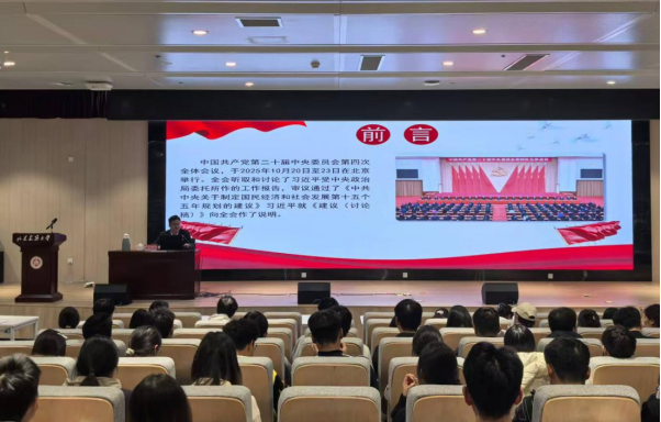 11月17日,学院全体教职工通过政治理论学习集体学习了《中国共产党第二十届中央委员会第四次全体会议公报》及《中共中央关于制定国民经济和社会发展第十五个五年规划的建议》,重点解读了全会关于“十五五”时期经济社会发展的主要目标、重大原则和重点任务,特别是围绕“加快高水平科技自立自强”“培养德智体美劳全面发展的社会主义建设者和接班人”等与高等教育紧密相关的部署要求进行了深入学习。全体教职工表示将以此次学习为契机,把学习成果转化为履职尽责的实际行动,在学思践悟中坚定跟党初心,在立德树人征程中书写青春华章。