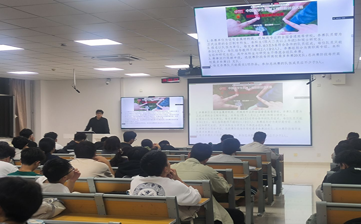 分享会上,主讲内容精准聚焦“挑战杯”“国创赛”“热处理大赛”“金相技能大赛”等重量级科创赛事。现场通过播放赛事宣传视频、深度剖析实战案例、开展面对面答疑等丰富形式,系统且细致地解读了各赛事的规则要点与备赛核心技巧。三位主讲人结合自身参赛经历,从赛事选题构思的切入点、项目推进中的难点突破,到团队协作的高效方法,毫无保留地分享宝贵经验。面对新生提出的疑问,他们耐心细致地逐一解答,现场互动频繁,氛围热烈高涨。