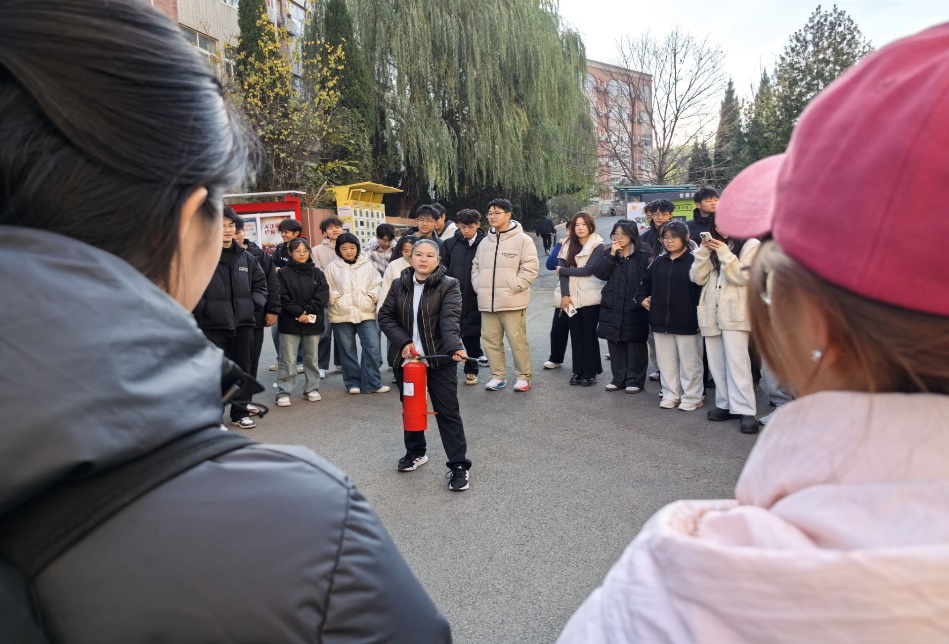 12月18日,为进一步巩固和提升学生应对能力,学院组织2024级学生开展消防演练活动,活动在梅园一号楼公寓进行。本次演练在巩固应急疏散流程的基础上,重点提升了学生对公寓消防设施的认知与应用能力。公寓工作人员讲解了消防水带、水枪的快速连接、操作要领及适用场景,深化了学生对公共消防设备系统的理解。随后进行的疏散演练,学生们行动迅速、秩序井然,展现了良好的安全素养与协同意识。