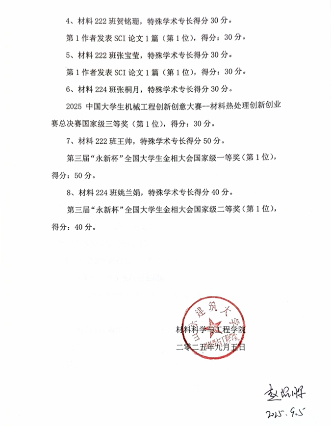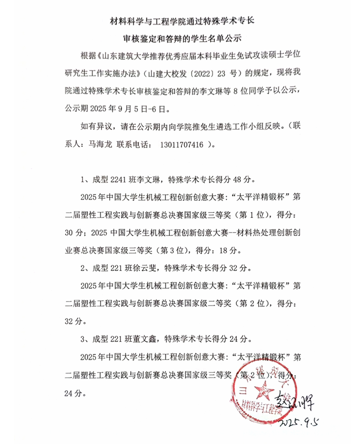 材料科学与工程学院通过特殊学术专长审核鉴定和答辩的学生名单公示