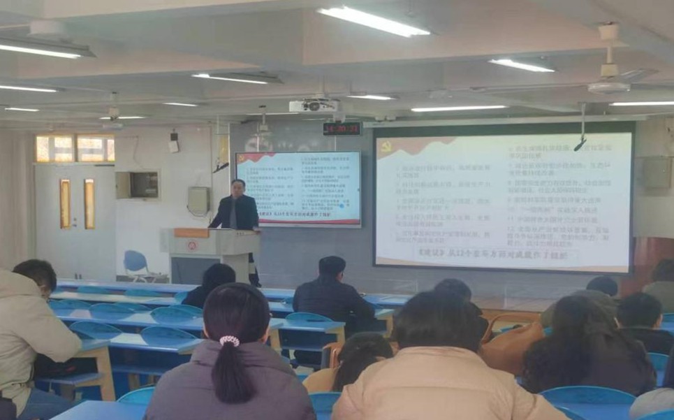 为深入学习贯彻党的二十届四中全会精神,11月27日,法学院党委书记杨广晖以《学习二十届四中全会精神,为基本实现社会主义现代化而奋斗》为题,为教职工解读四中全会精神,学院全体教职工参加。