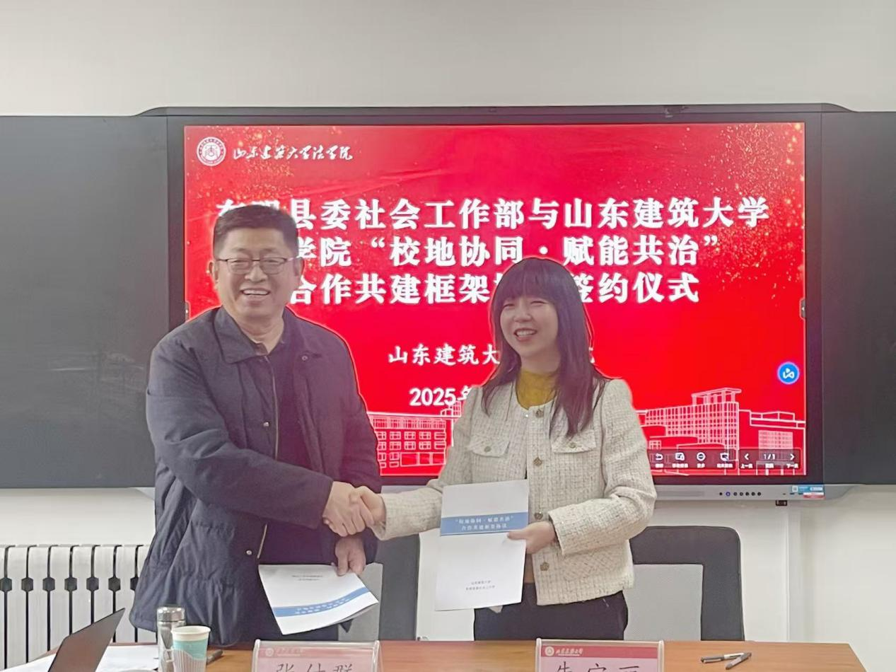 东明县委社会工作部部长、县委“两新”工委书记张付群介绍了东明县的发展成就和基层治理的需求。他强调,基层治理现代化的核心是人才支撑与理论赋能。东明县始终深耕基层治理一线,在党建引领民生服务提质等方面积累了丰富实践经验,但当前县域基层治理仍面临专业人才短缺、治理模式创新等现实挑战,此次与山东建筑大学法学院携手,正是精准对接需求、破解发展瓶颈的关键举措。
