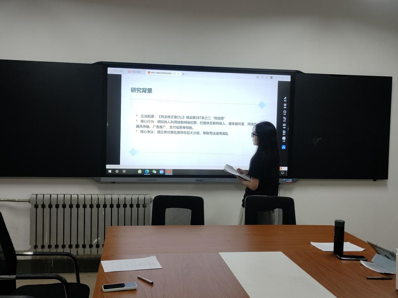 近日,法学院在外文楼312会议室举办第二十一期“筑法研律”学术报告会。本次报告会由2023级法律硕士陈昊炜、杨锦、社会工作硕士曹莹、张怡然主讲,左敏教授莅临指导,2023级、2024级部分研究生参加。报告会由第五届研究生会文体部干事王文娜主持。
