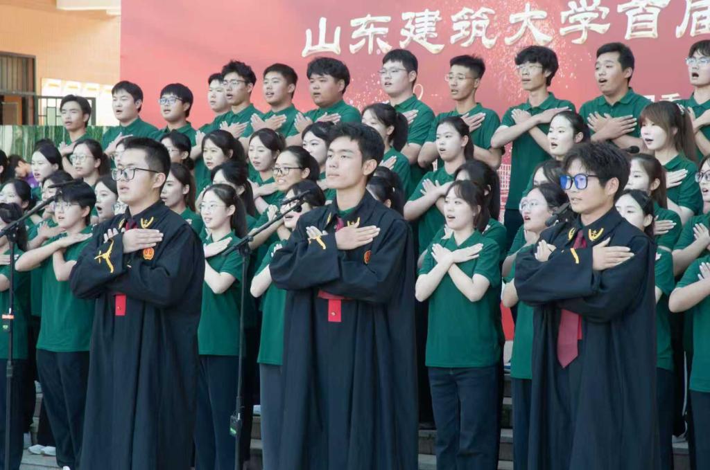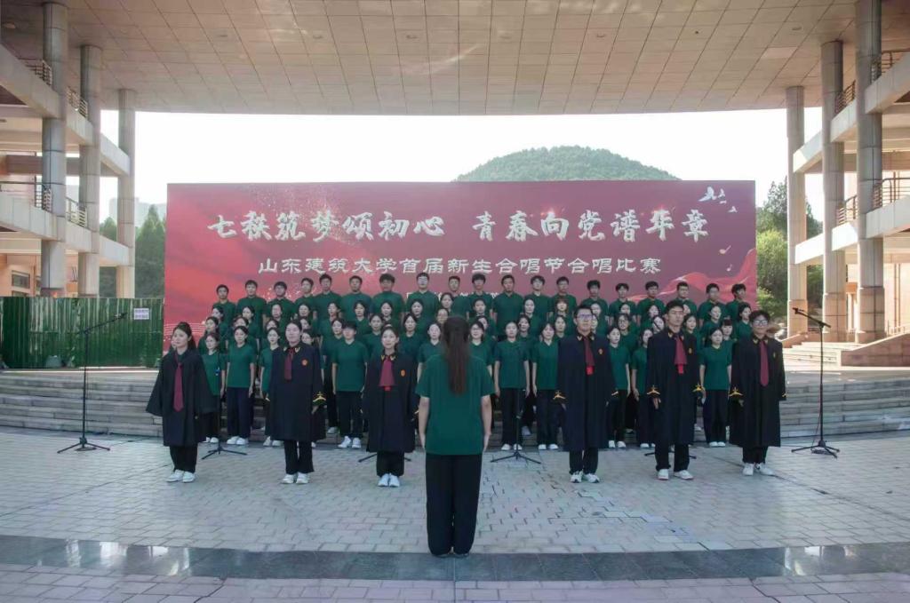 9月25日下午,山东建筑大学“七秩筑梦颂初心 青春向党谱华章”首届新生合唱节比赛顺利举行。法学院新生合唱团以《筑梦》校歌与《我的未来不是梦》两首曲目,在比赛中展现出法学学子的专业底色与青春锋芒,他们以歌为剑,“筑梦”法治青春未来。