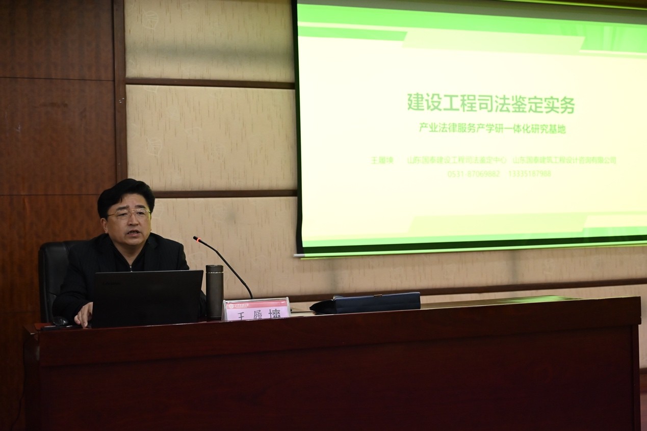 11月19日上午,市司法局第45期“青年夜学会”暨第2期“融联体大讲堂”进高校活动在山东建筑大学博学会堂举办,王履塽会长作题为“建设工程司法鉴定实务”的学术报告。讲座由法学院副院长王翠敏主持。学院院长朱宝丽,济南市司法局年轻干部代表刘鹏,济南市司法局“青年夜学会”学员,济南市建筑业协会相关负责同志和山东建筑大学法学院师生代表近200人参加。