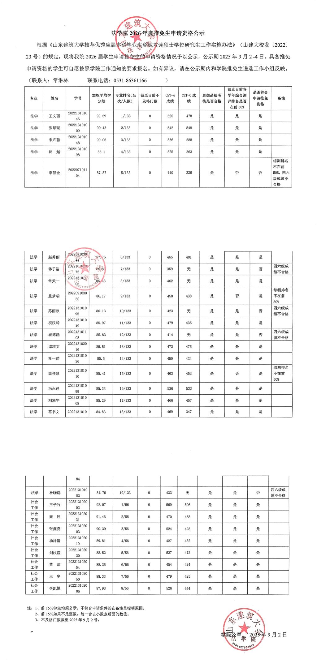 法学院2026年度推免生申请资格公示