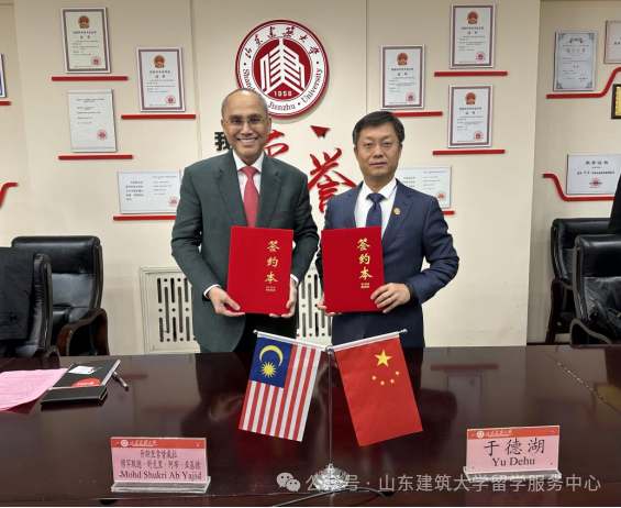 2025年11月7日,马来西亚管理与科学大学(Management and Science University, MSU)校长丹斯里拿督威拉穆罕默德·舒克里·阿布·亚基德(Mohd Shukri Ab Yajid)、常务副校长朱奈娜·阿布杜·哈米迪(Junainah Abd Hamid)与该校分管国际事务的副校长英丹·艾瑞缇·艾瑞芬尼(Indang Ariati Ariffin)等一行8人访问山东建筑大学。山东建筑大学校长于德湖、副校长王清标会见了代表团并签署合作备忘录。
