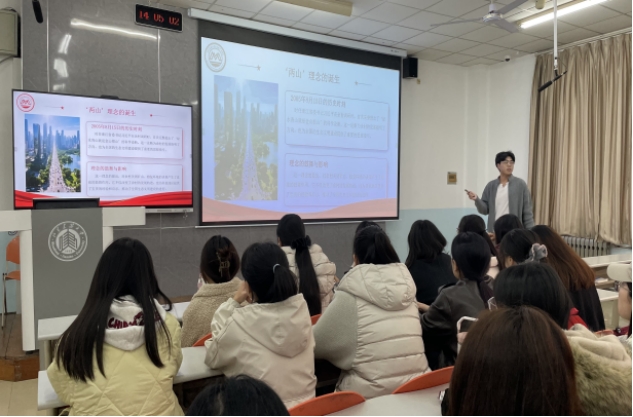 11月13日,马克思主义学院联合管理工程学院举办“绘绿青春答卷 共筑金山银山”为主题的政治理论学习。马克思主义学院“哲也”青年学习社宣讲员孔子强担任主讲,管理工程学院学生参加学习。
