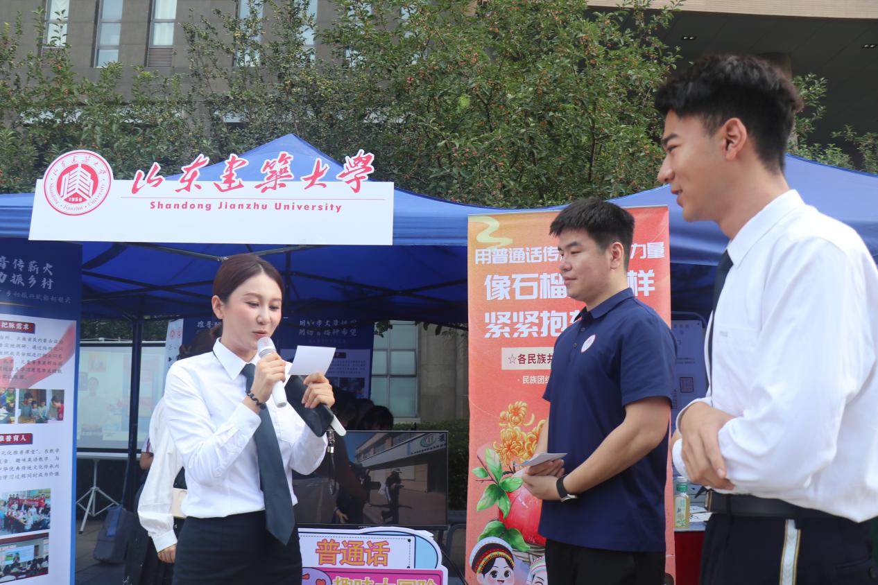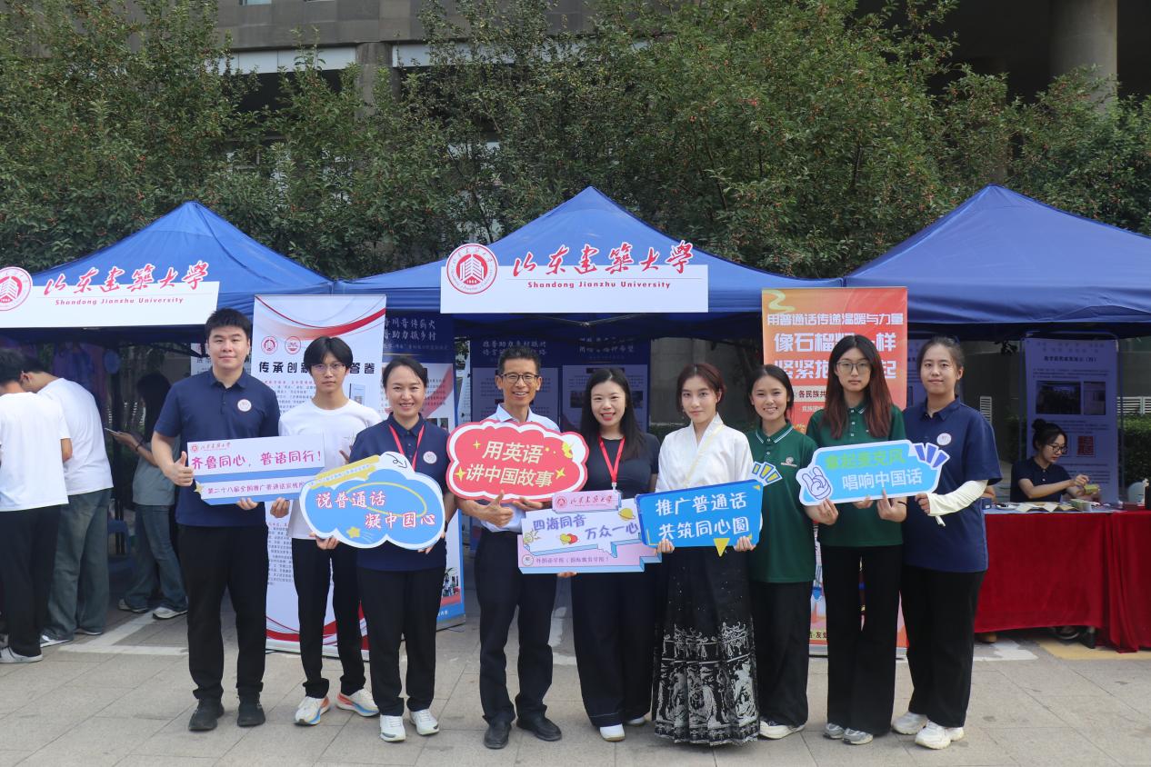 近日,山东建筑大学参加第28届全国推广普通话宣传周山东省启动仪式淄博主会场活动,外国语学院推普实践团队项目代表学校参展。