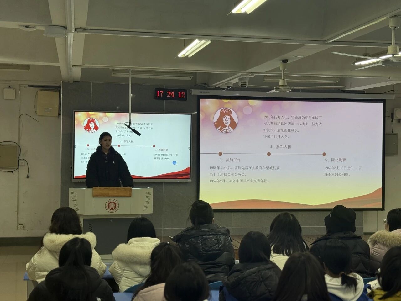 活动伊始,马克思主义学院“哲也”青年学习社成员柏妤围绕雷锋精神进行宣讲,从雷锋精神的时代内涵、历史渊源讲起,结合新时代的发展需求,深入剖析了雷锋精神在当代社会的重要价值和现实意义。通过详实的资料、生动的案例,将雷锋精神这一抽象概念具象化,让同学们深刻认识到雷锋精神不仅仅是一句口号,更是一种融入日常生活、工作和学习的行为准则。