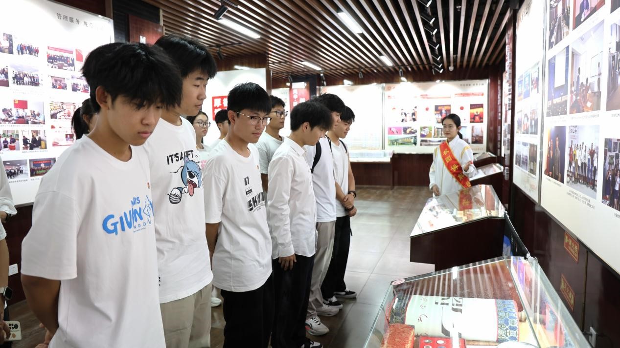 在讲解员的引导下,2025级新生们有序步入校史馆。校史展区由序篇、砥砺筑基、风华跃迁、竞谱华章、流光思源、筑梦前行六大篇章组成,近百张展板、几百件实物,全面介绍了学校的光辉奋斗历程。从筚路蓝缕、艰苦创业的奋斗岁月,到风雨兼程的成长蜕变,再到如今蓬勃发展、硕果累累的辉煌成就,讲解员结合实物展品和历史照片,耐心细致地向大家讲述建大故事。参观过程中,大家不时驻足观看,感受学校深厚的文化底蕴和蓬勃的发展活力。