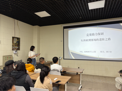 材料科学与工程学院的刘宇轩以优异成绩推免至山东大学晶体材料研究所。她聚焦“竞赛助力保研,从科研到赛场的进阶之路”,详细阐述了学科竞赛与学术科研的联动逻辑。她提到,参与科研项目锻炼了自己实验与撰写能力,而竞赛能够实现成果转化并展现创新价值,二者相辅相成,为保研成功奠定了坚实基础。