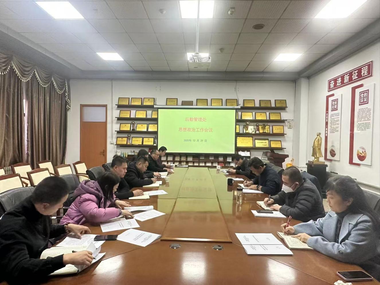 会议传达学习了《中共山东建筑大学委员会关于印发〈山东建筑大学思想政治工作责任清单〉的通知》,研究梳理了2025年后勤管理处思想政治工作,并通过《后勤管理处党总支关于2025年度思想政治工作情况的报告》。