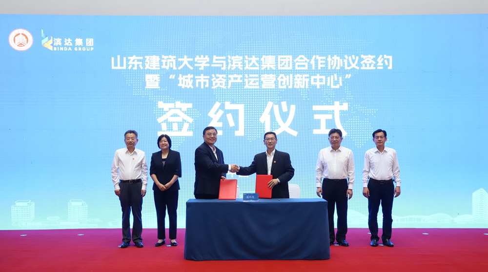 9月19日,山东建筑大学与滨达集团合作协议签约暨“城市资产运营创新中心”揭牌仪式在滨州举行。滨州市人大常委会党组书记、主任马俊昀,滨州市人民政府党组成员、副市长张瑞杰,山东建筑大学党委书记杨景波,党委委员、副校长张志刚出席活动。