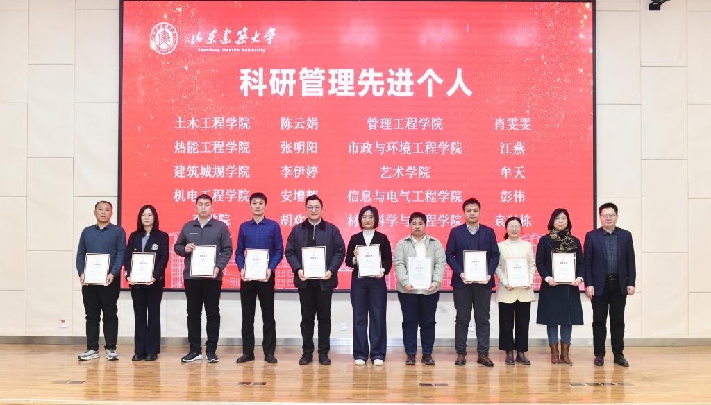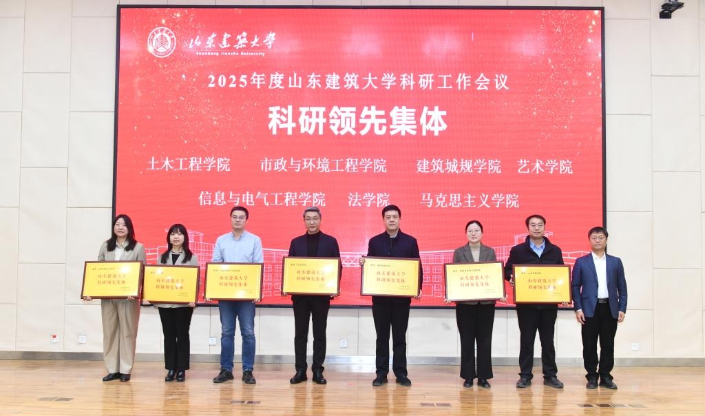 1月23日上午,山东建筑大学2025年度科研工作总结大会在博学会堂召开。大会全面复盘2025年科研工作的丰硕成果与实践经验,系统部署2026年科研发展的重点任务与攻坚方向,为学校科研事业的高质量发展注入强劲动力。学校党委副书记、校长于德湖,党委副书记许记中,党委委员、副校长王清标出席会议。会议由党委委员、副校长邱立平主持。