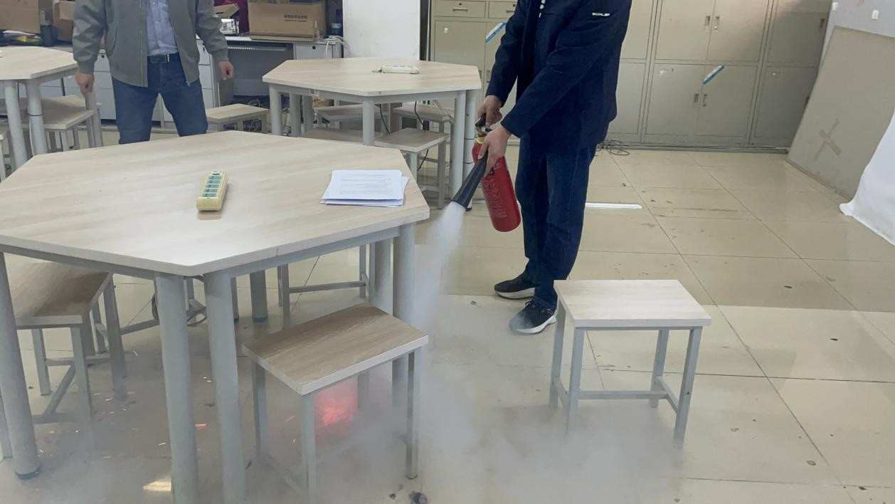 本次消防安全专项培训与演练活动共设置理论培训、灭火演练与安全逃生三大环节。学院实验室主任张涵系统讲解了实验室常见灭火器分类及使用方法、火灾分类、不同场景初起火灾扑救原则及应急逃生技能,并现场演示了灭火器等专用器材的正确使用方法;讲解了不同灭火器的适用场景,并指导师生代表重点进行灭火与安全逃生演练。