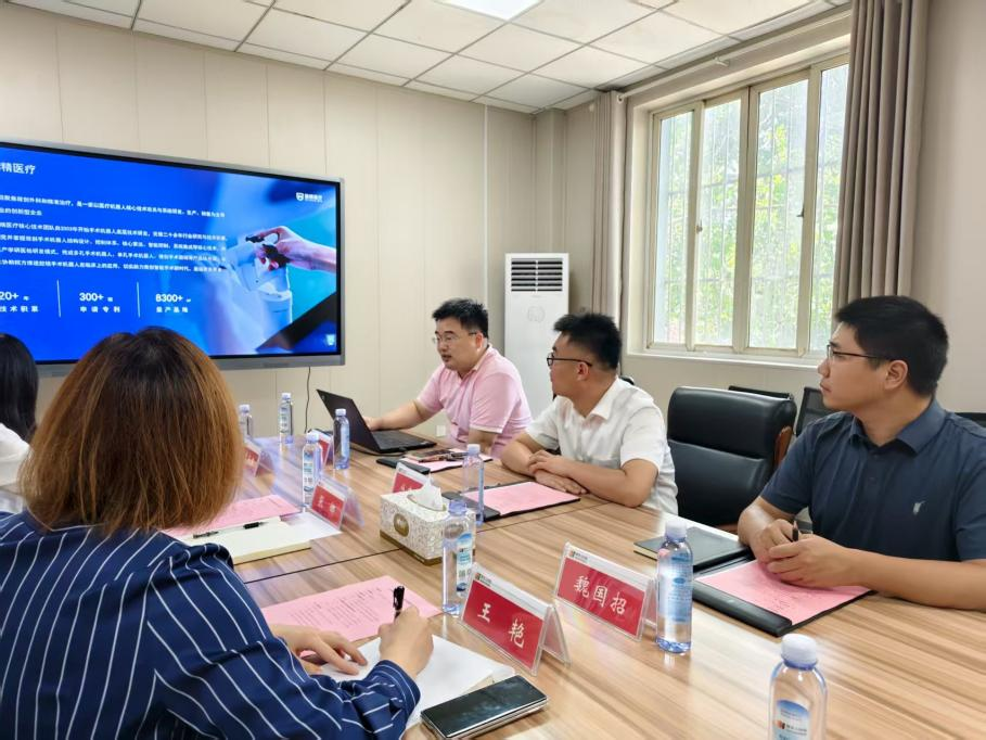 座谈环节,双方就产学研一体化合作展开深入对话。企业项目经理王艳从核心技术研发、创新人才激励机制及员工职业发展体系三方面进行介绍。丛东升详细阐释学院“新工科”建设布局与“双创”育人体系,着重介绍了智能制造、机器人等特色学科发展动态,并就企业反馈的机械工程专业人才核心素养要求展开研讨。李坤就手术机器人项目的最新进展、手术机器人与数字化技术的融合以及后续研发规划进行了详细汇报。双方围绕数字医学教育技术创新、虚拟仿真教学体系构建、实践教学、实习就业等议题开展深度交流。张娜谈到,随着企业进入高速发展期,亟需高素质机械工程专业人才支撑智能化产线升级,期待通过共建产教融合实践基地、联合开展横向课题攻关等形式,打造校企协同创新共同体。