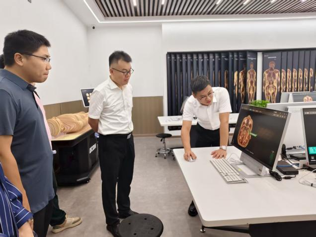 在山东数字人科技股份有限公司研发总监张娜等企业高管陪同下,学院一行实地参观了企业展厅,系统了解公司发展沿革、战略布局及自主创新成果,重点观摩体验了高清数字人虚拟解剖系统、STEM智能教学矩阵、高精度人体解剖数据库及数字医学3D打印等前沿技术成果。