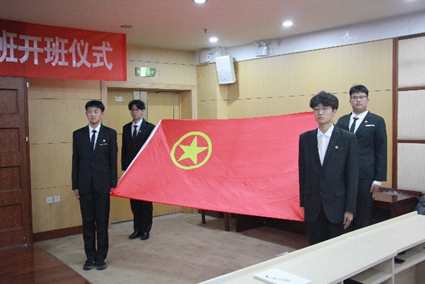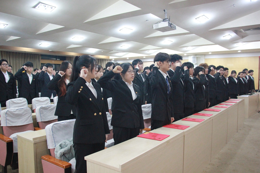 优秀青马学员为2025-2026学年青马班学员代表授旗,鲜红旗帜传递信仰与使命;授旗后,全体青马班成员重温入团誓词。