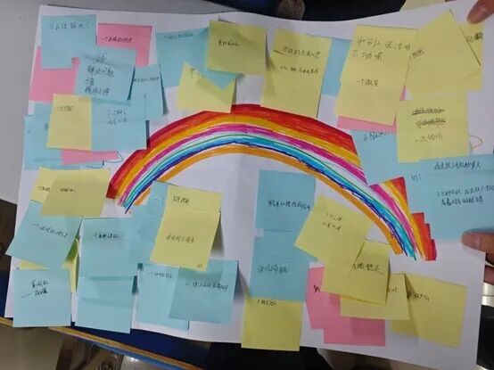 “我的人际能量贴”环节温情满满,同学们共同绘制“人际彩虹桥”,在便利贴上写下对他人人际支持的期待与自身改变的承诺,内容充满了对真诚交往的渴望与自我提升的决心。
