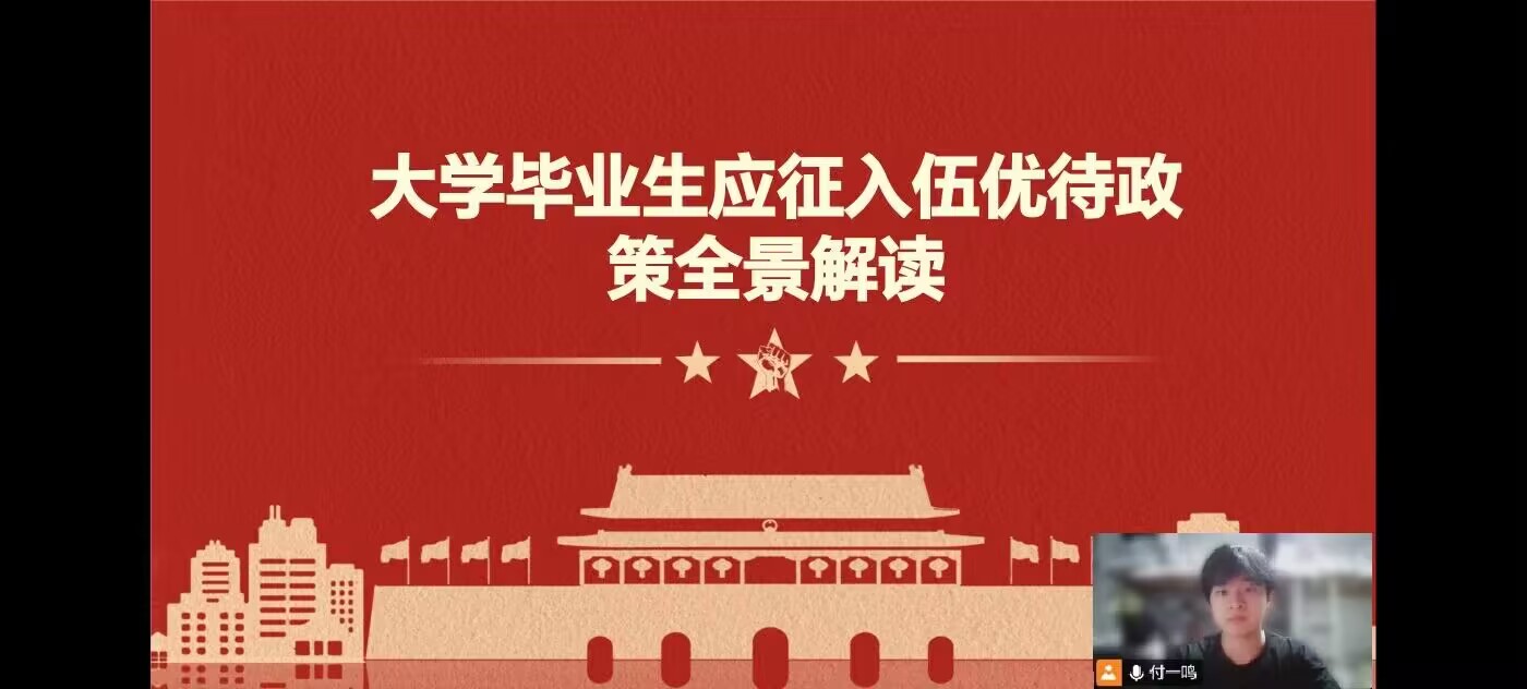 为引导青年学子投身国防事业,11月20日下午,机电工程学院以线上会议形式举办征兵宣讲活动。本次活动由山东建筑大学机电工程学院就业指导中心征兵就业服务部部长付一鸣主讲,学院征兵辅导员、毕业班学生及低年级意向参军同学参与,线上参会人数超50人。