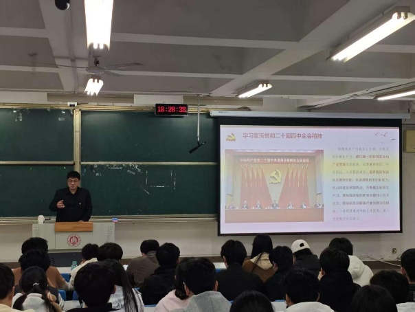 首先,学院党委书记张立新从“政治忠诚、纪律严明、品德高尚、作用突出”四个维度,系统阐释了新时代合格党员标准。他还围绕党的二十届四中全会精神核心要义展开解读,结合青年成长和党性修养实际,助力大家深刻领悟全会精神的时代意义。