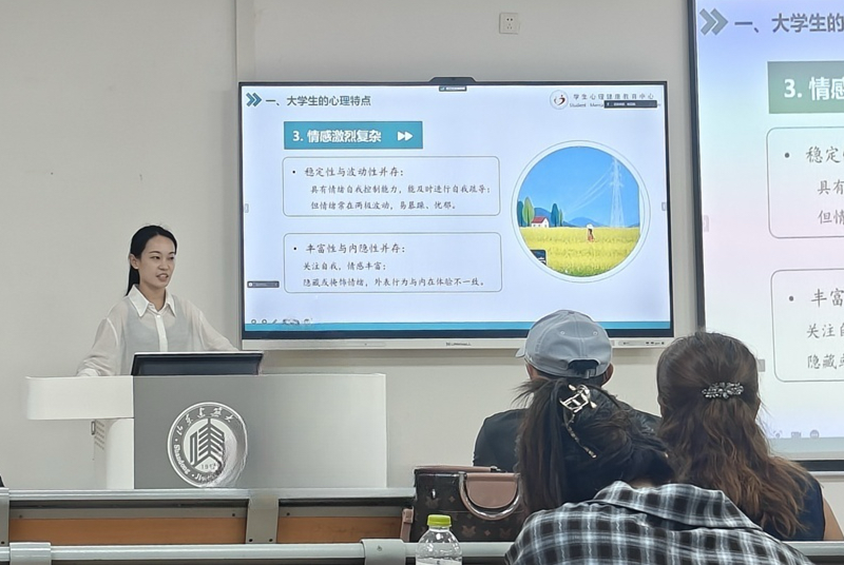 王浩镔作为新生辅导员介绍“大学生日常管理事项规定”,系统介绍了大学阶段学习与生活的特点,帮助学生更好地适应新环境、规划个人发展。