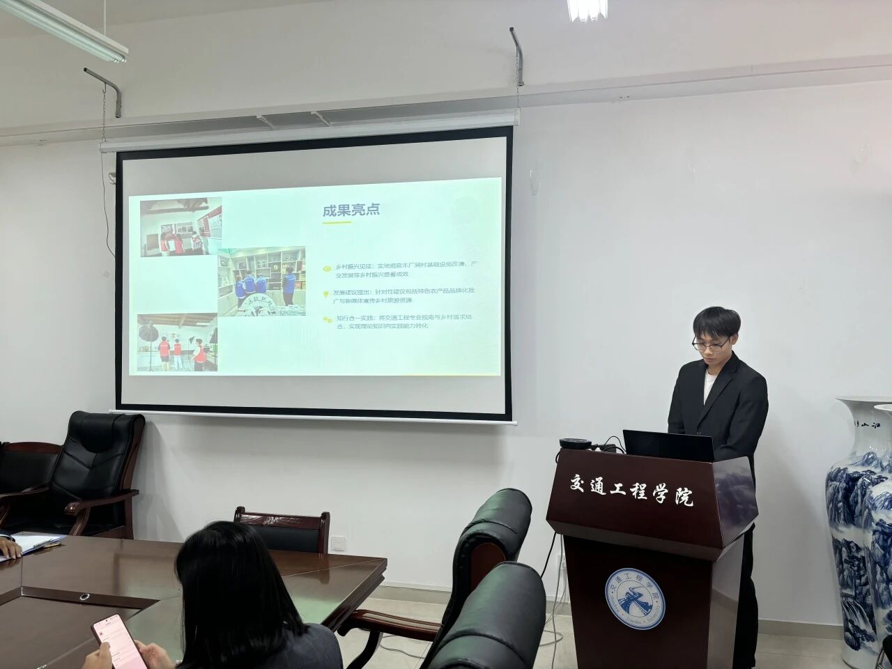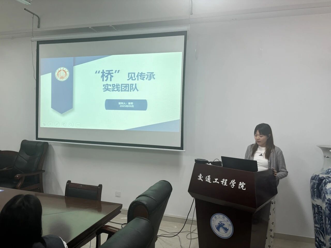 9月21日,交通工程学院召开2025年暑期社会实践评审会,11支重点社会实践团队进行答辩展示,学院团委书记阚乐乐参加。