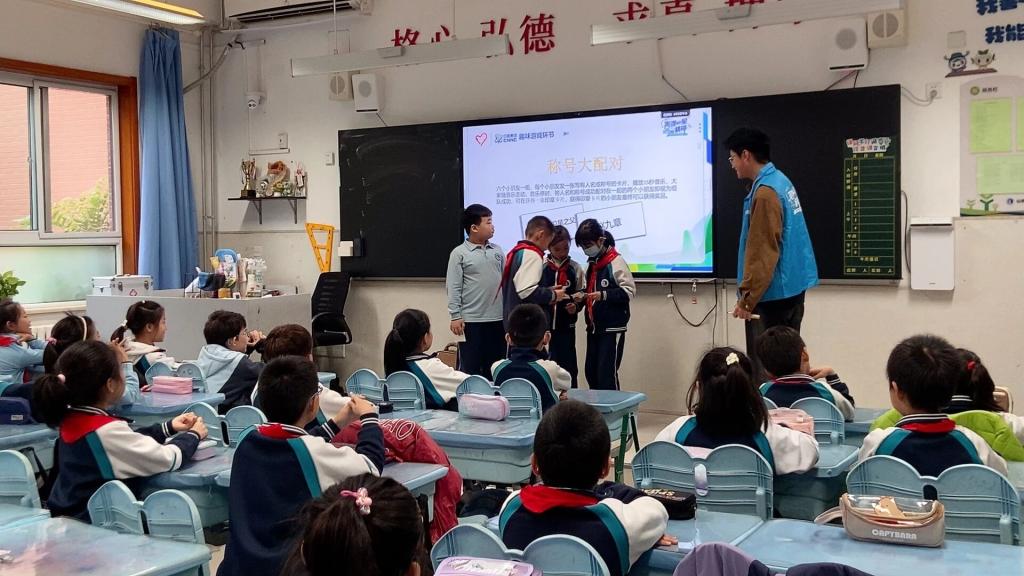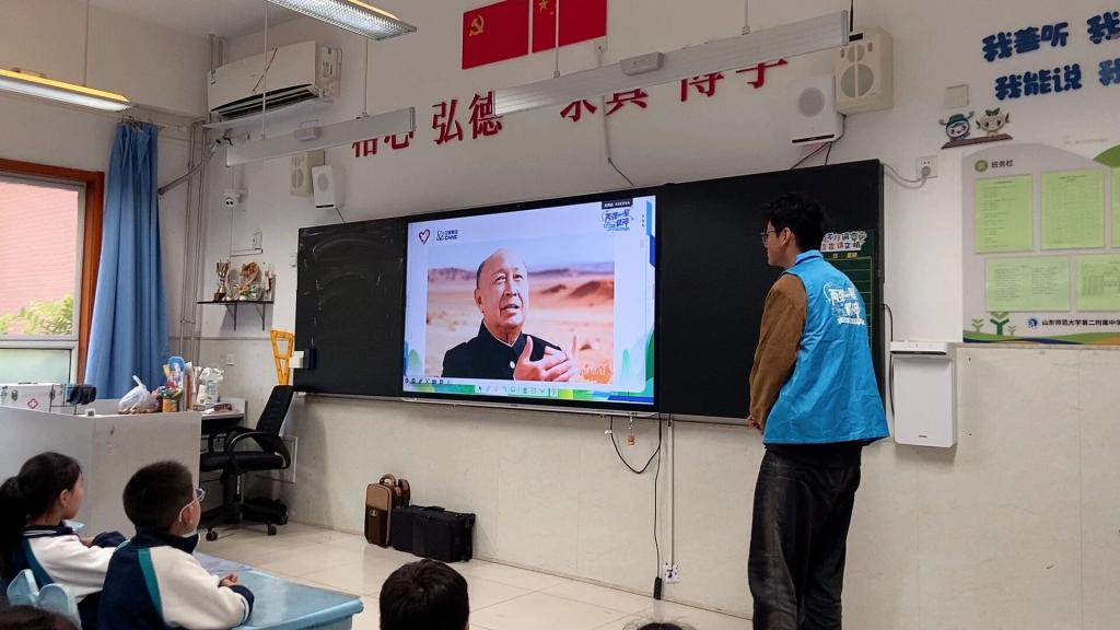 厚植青少年爱国情怀,传承“热爱祖国、无私奉献,自力更生、艰苦奋斗,大力协同、勇于攀登”的“两弹一星”精神,11月6日,山东建筑大学“赤子红心行动队”赴山师二附中开展了一场别开生面的志愿宣讲活动。活动创新融入时空对话、绘本阅读、积木搭建三大特色环节,搭配功勋故事分享、趣味游戏与宣誓仪式,让三年级一班小学生在沉浸式体验中感悟科学魅力,致敬时代楷模。