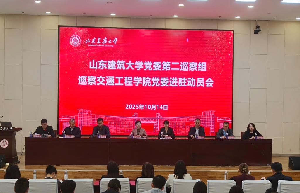 按照学校党委巡察工作的统一部署,2025年10月14日,学校党委第二巡察组巡察交通工程学院党委进驻动员会召开。学校纪委书记、山东省监委驻山东建筑大学监察专员、巡察工作领导小组副组长李艳红,学校党委委员、组织部部长兼巡察工作办公室主任周颜玲出席会议,巡察组组长徐广利作动员讲话,学院党委书记张立新主持会议并作表态发言。