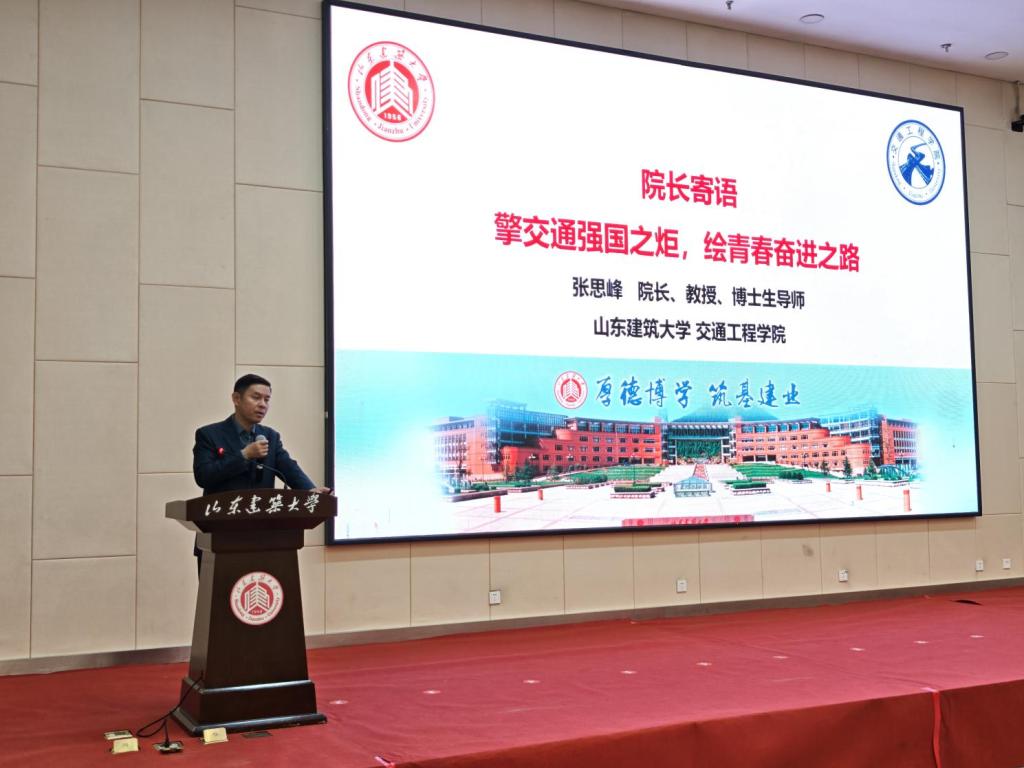 张思峰院长从学院基本概况、学科专业、师资队伍、科研平台及人才培养五方面作全面介绍。他指出学院深耕交通领域,学科贯通本研,覆盖交通基础设施工程、交通工程等关键领域;师资博士化率高、“双师型”教师占比突出,拥有道路与交通工程实验室等科研平台及紧密的校企合作网络,毕业生就业率稳居高位,多就职于交通系统与大型基建企业。最后,他以“擎交通强国之炬,绘青春奋进之路”寄语新生,鼓励同学们以专业学识赋能国家交通事业发展。