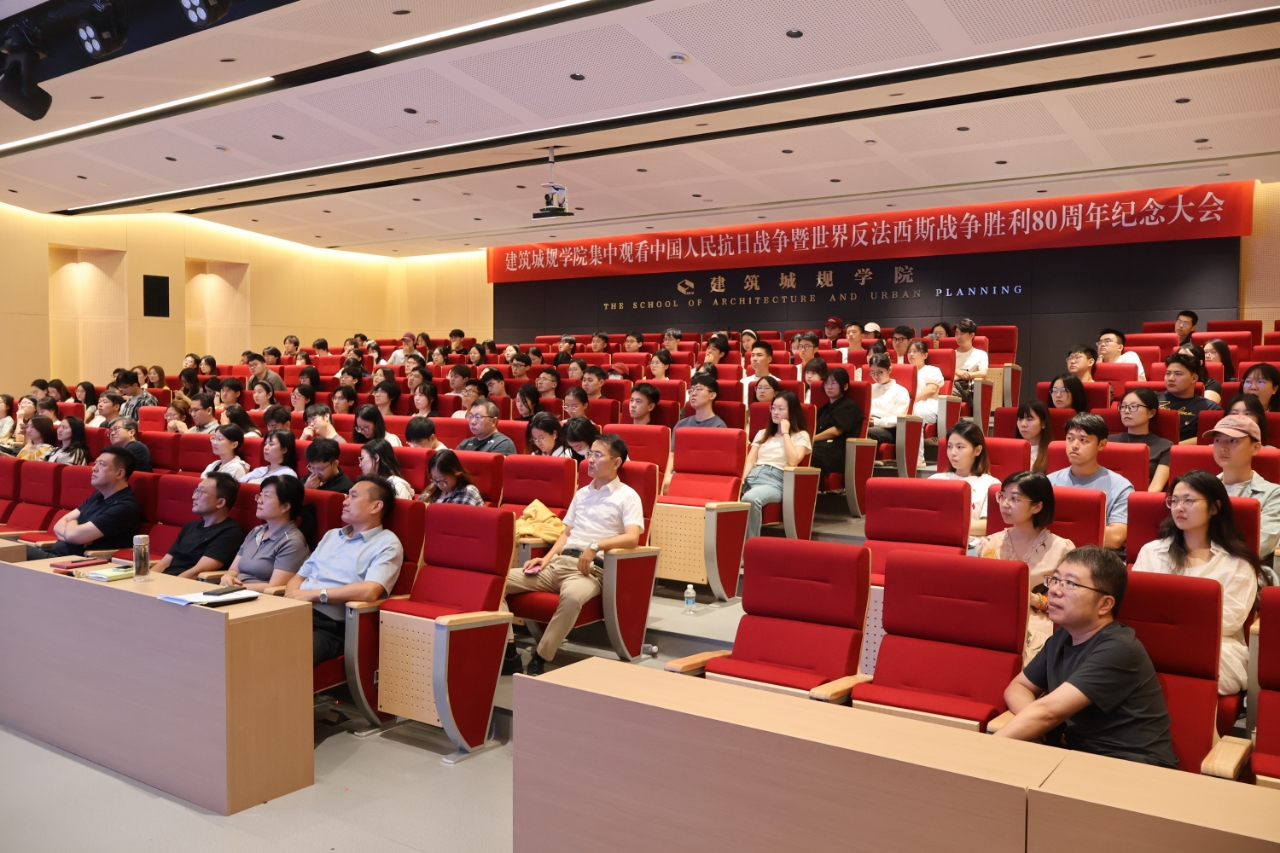 9月3日上午9时,纪念中国人民抗日战争暨世界反法西斯战争胜利80周年大会在北京天安门广场隆重举行。建筑城规学院在JY313报告厅组织师生收看直播盛况,共同见证这一激动人心的庄严时刻。