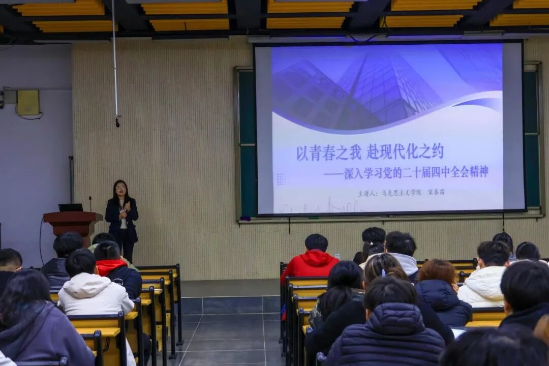 在党课授课环节,建筑城规学院党委书记董欲晓、马克思主义学院教学办主任宋春苗、建筑城规学院学工办主任白林、建筑城规学院党建辅导员周广晴先后进行了授课。董欲晓讲授党课《诠释对党绝对忠诚》,系统梳理入党誓词的变化脉络,深刻阐释“对党绝对忠诚”这一根本政治要求的思想渊源、历史逻辑与时代价值,激励青年学生自觉强化理论武装,坚持不懈用习近平新时代中国特色社会主义思想凝心铸魂,在担当作为、履职尽责、攻坚克难中践行忠诚誓言。宋春苗以《以青春之我 赴现代化之约》为主题,从看“十四五”成就、判当前形势、析目标举措、答青年何为几个方面领学党的二十届四中全会精神,引导学生深化对党的创新理论的理解,为推进中国式现代化贡献智慧与担当。白林作《党旗引航溯初心,党徽凝力铸强魂》专题授课,全面解读了党徽党旗的规范使用与精神内涵,引导学生深刻领会条例要求,增强政治意识和组织观念,以规范言行筑牢党员初心使命。周广晴围绕《循党章明方向 守党纪知敬畏》主题,系统解读党章核心内容与纪律要求,引导学员严守政治规矩,增强宗旨意识,以实际行动践行初心使命。最后,学院组织观看红色电影《志愿军2》,再现革命先辈的英勇事迹,激发青年学子传承红色基因、勇担时代使命。