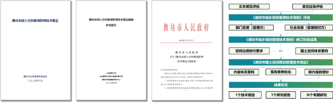 其中,《临沂市兰山区国土空间分区规划(2021-2035年)》坚持“标准研发与规划编制同步、战略研究与规划目标耦合、技术创新与治理需求匹配、规划实践与人才培养融合”四大原则,以“政学产研融合”创新路径,先后完成了“1+1+5+N”的系列成果。《潍坊市国土空间规划管理技术规定编制研究》建立空间治理视角下地方规划管理技术规定修订框架,编制完成《潍坊市城乡规划管理技术导则(2022版)》《潍坊市国土空间规划管理技术规定》两版技术管理文件,强化地域特色与精准管控,进一步实现规划编制和管理的标准化、规范化,全面提升地方城乡空间治理效能。