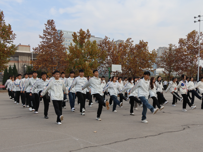 活动前期,同学们高度重视、积极筹备,利用课余时间刻苦训练。在各负责人的带领下反复打磨每一个动作细节,从队列排布到节奏把控,从肢体伸展到精神面貌,都力求做到精准规范、协调统一。比赛当日,各班按照抽签顺序两两一组整齐列队,依次登台展现风采,伴随着轻快激昂的广播操音乐,同学们抬头挺胸、步伐整齐,伸展、弯腰、转身、跳跃等动作规范标准、刚劲有力,团队协作的精神悄然生根,彼此间的默契在无声的配合中升华。