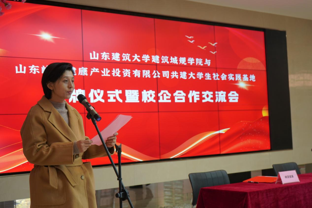 王春元首先代表企业对建筑城规学院一行的到来表示热烈欢迎,并表达了峰源健康对与高校合作、共育专业人才的高度重视与期待,希望以此次合作为契机,实现资源共享、优势互补。建筑城规学院党委书记董欲晓代表学院致辞,感谢企业对学院发展给予的支持,重点介绍了学院在学科建设、教学科研、学生培养等方面的特色优势,以及学校无障碍研究中心在研究与实践方面取得的进展与成果,希望进一步加强产学研深度合作,推进适老化改造与养老服务,共同守护“老有所安”的美好图景。仪式上,与会领导分别为大学生社会实践基地、就业实习基地揭牌。