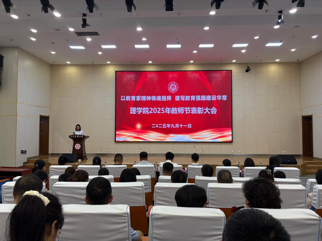 9 月 11 日下午,理学院在博学会堂顺利举行2025年教师节表彰大会。学院全体教师、学生代表参加活动。党委委员、副校长李青出席活动。会议由学院党委副书记贾德芳主持。
