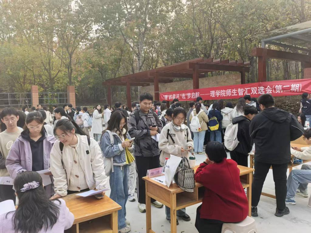 近日,理学院在源远亭广场举办第二期"理"韵星河,"选"梦启航师生智汇双选会。本次活动有13位老师和近300名同学参与。