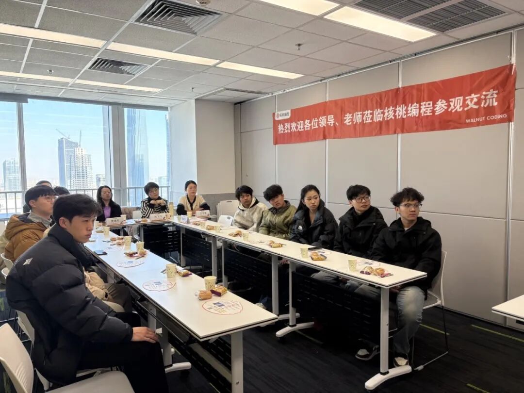 活动伊始,师生们实地参观了核桃编程济南分公司的办公环境,深入了解企业文化建设、员工工作场景,切身感受了企业的活力与潜力。在随后的座谈会上,路春雨就核桃编程的企业发展历程、核心业务布局以及2026届招聘岗位需求、薪资待遇、人才培养体系等进行了系统介绍。在校友分享环节,理学院优秀毕业生郭毓嘉通过线上方式分享了在核桃编程的成长经历与职业收获。