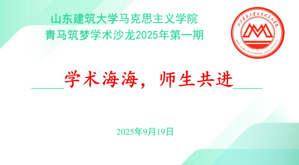 为搭建师生学术交流平台,推动形成马克思主义理论青年学者学术共同体,9月19日上午10点,山东建筑大学马克思主义学院在BG217教室举办“青马筑梦”首期学术沙龙,主题为“学术海海,师生共进”。九位青年博士教师与研一全体新生、研二研三学生代表共同参与,围绕学术成长、研究方法等主题展开深入交流。活动由学院科研工作办公室主任秦芳主持。