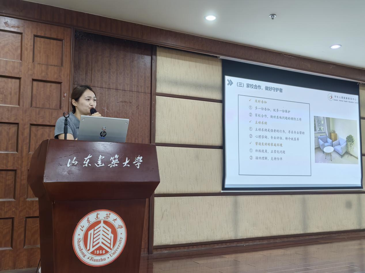 会议第二阶段,学校心理健康中心专职教师井玉汝作题为《心晴相伴,共育花开》的心理健康科普讲座。她从大学生常见心理适应问题入手,指导家长如何识别孩子的情绪变化、如何进行有效沟通、如何配合学校做好心理支持工作,帮助新生平稳度过大学适应期,走好新征程。