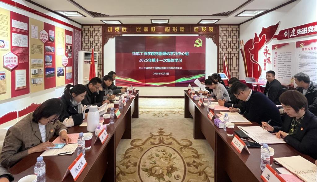 近日,山东建筑大学热能工程学院党委理论学习中心组创新学习形式,赴山东省地矿工程集团有限公司开展调研式(扩大)学习。双方围绕《中共中央关于制定国民经济和社会发展第十五个五年规划的建议》进行专题研讨,共同谋划共同谋划“双碳”目标下以绿色发展为引领,深化校企合作、推动产学研融合的实践路径。热能工程学院学院党委书记朱新筱,党委副书记、院长崔萍携其他中心组成员、院直单位部分负责人一同参加。
