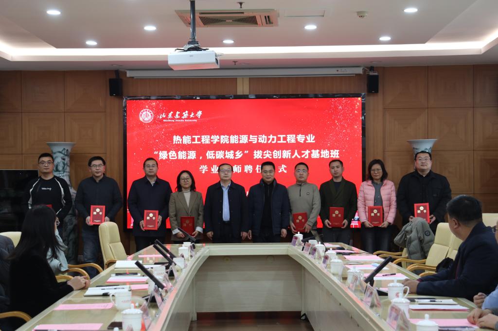 2026年1月15日下午,山东建筑大学能源与动力工程拔尖创新人才基地班学业导师聘任仪式在TS202顺利举行。副校长赵继龙、教务处处长何芹、热能工程学院党政负责人、学业导师代表及能创241班全体学生参加活动。仪式由副院长庄兆意主持。