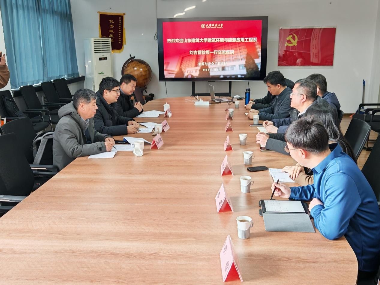 2026年1月27日,热能工程学院新能源系主任张增刚老师,建筑环境与能源应用工程系主任刘吉营老师和副主任孔令健组成调研团队,前往天津城建大学能源与安全工程学院,围绕建筑环境与能源应用工程和新能源专业建设及科研合作进行了专题交流。