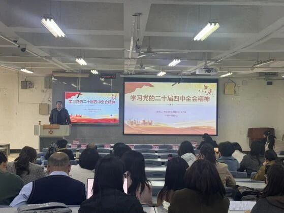 为深入学习贯彻党的二十届四中全会精神,准确把握全会精神核心要义与“十五五”规划战略部署,切实把广大教职工的思想和行动统一到党中央决策部署上来,11月6日,学院党委书记李杰瑞以“学习党的二十届四中全会精神”为题讲授专题党课,全体教职工参加了本次党课。