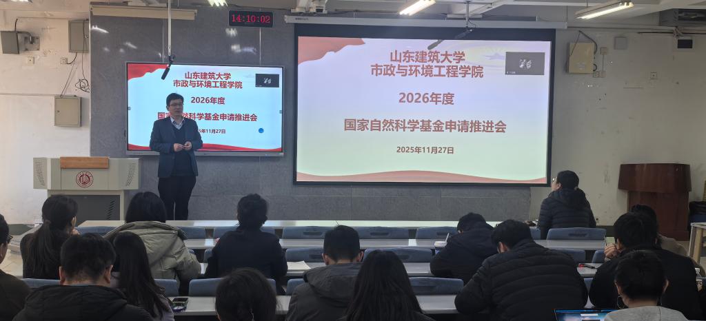 2025年11月27日下午,山东建筑大学市政与环境工程学院在学术报告厅举办2026年度国家自然科学基金申请经验分享会,旨在提升教师基金申请撰写能力,为来年申报工作蓄力。会议邀请西安建筑科技大学环境学院副院长文刚教授作特邀报告,学院曹秀凤、杜振齐、李晓晨三位老师分别分享实战经验,全院教师积极参与交流。