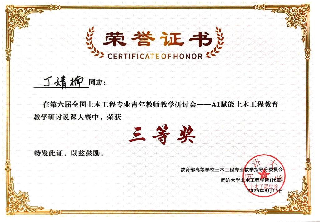 我院高度重视青年教师队伍建设,近年来遴选推荐多名优秀教师参加教学竞赛,“以赛促教”激发青年教师教学热情与创新能力,持续探索数字化教育创新,为土木工程专业高质量发展注入新动能。