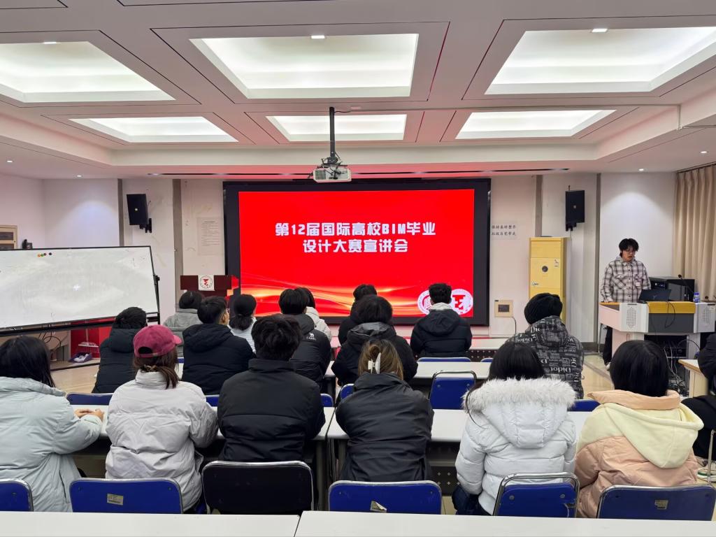 为精准契合建筑行业数字化转型的现实需求,进一步深化产教融合、以赛促学的育人实践,12月22日,土木工程学院在山东建筑大学科学西楼205教室举办第12届国际高校BIM毕业设计创新大赛宣讲会。往届获奖学生代表及参赛的学子齐聚现场,交流氛围热烈,干货满满。