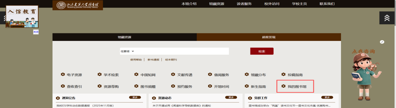 1.完善个人信息:登录建大图书馆网站——点击“我的图书馆”(图一),密码与学校统一身份认证一致,登录后点击“修改个人信息”(图二),录入新手机号和新邮箱,尤其是确保手机号码正确以便接收到书信息。
